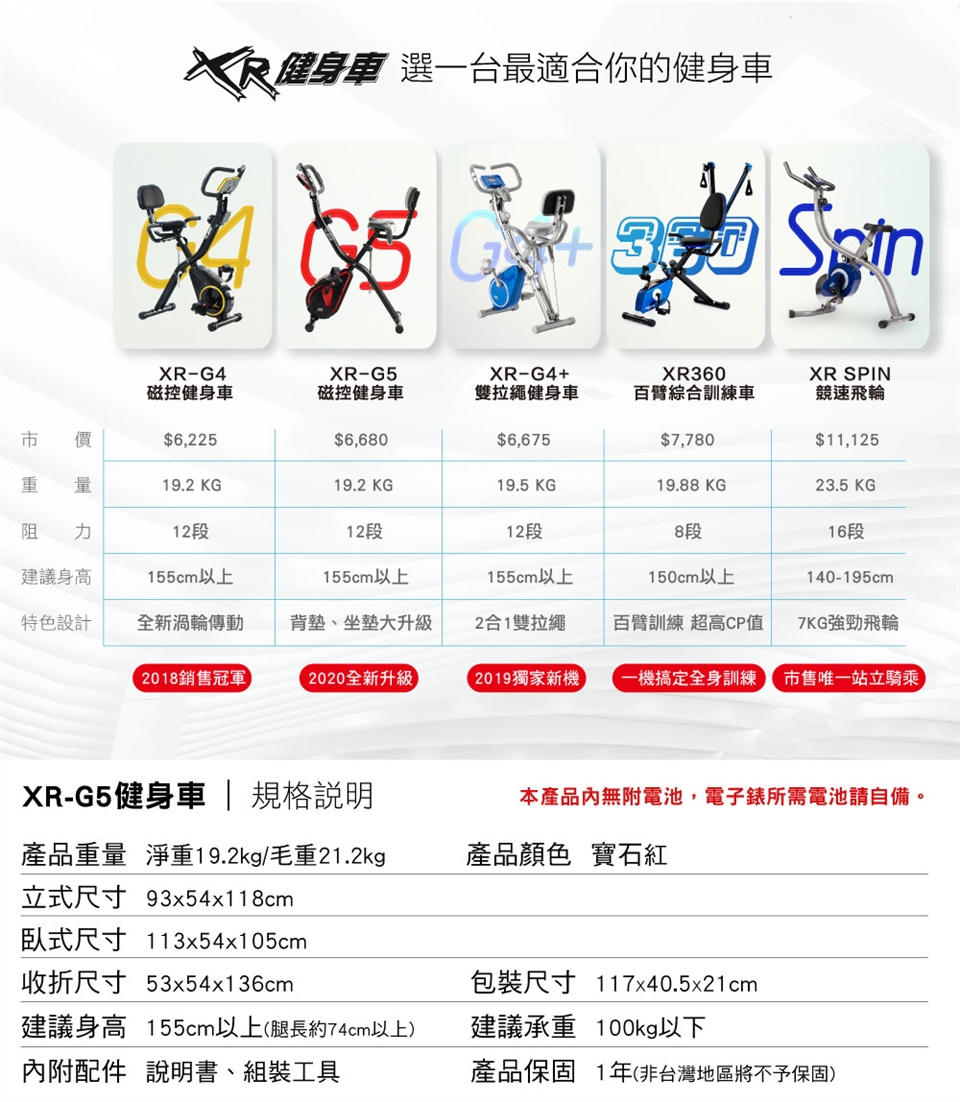 ▶此為「家庭用」健身車,若團體機關、社區健身房使用將影響保固。