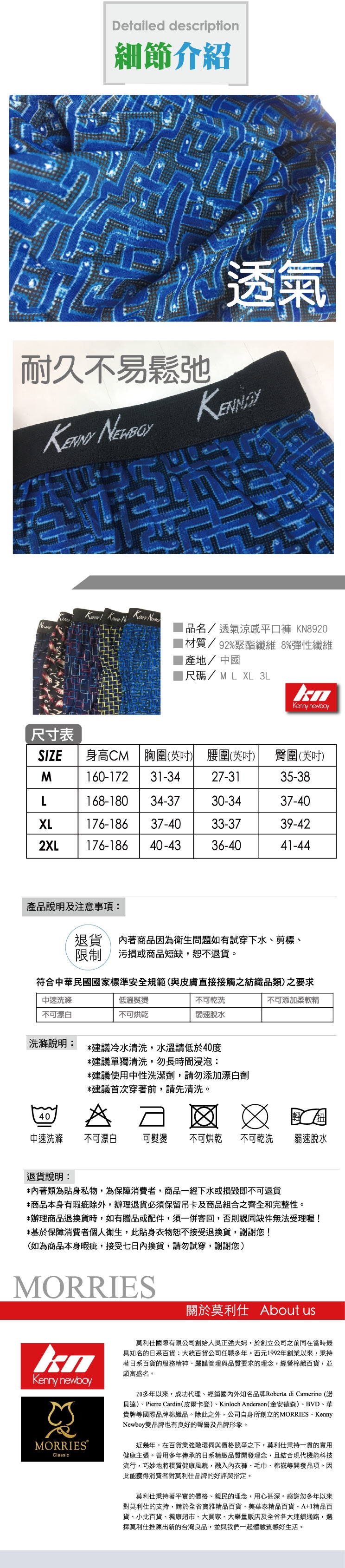 選購說明:基於保障消費者個人衛生安全,此貼身衣物恕不接受試穿、退貨,商品一經下水與損毀即不可退貨,選購時請見諒!除本商品本身有瑕疵外,辦理退貨必須保留吊卡及商品組合之齊全及完整性,否則視同缺件無法受理。
