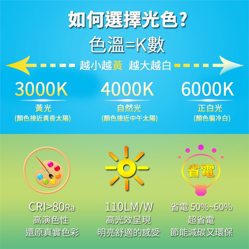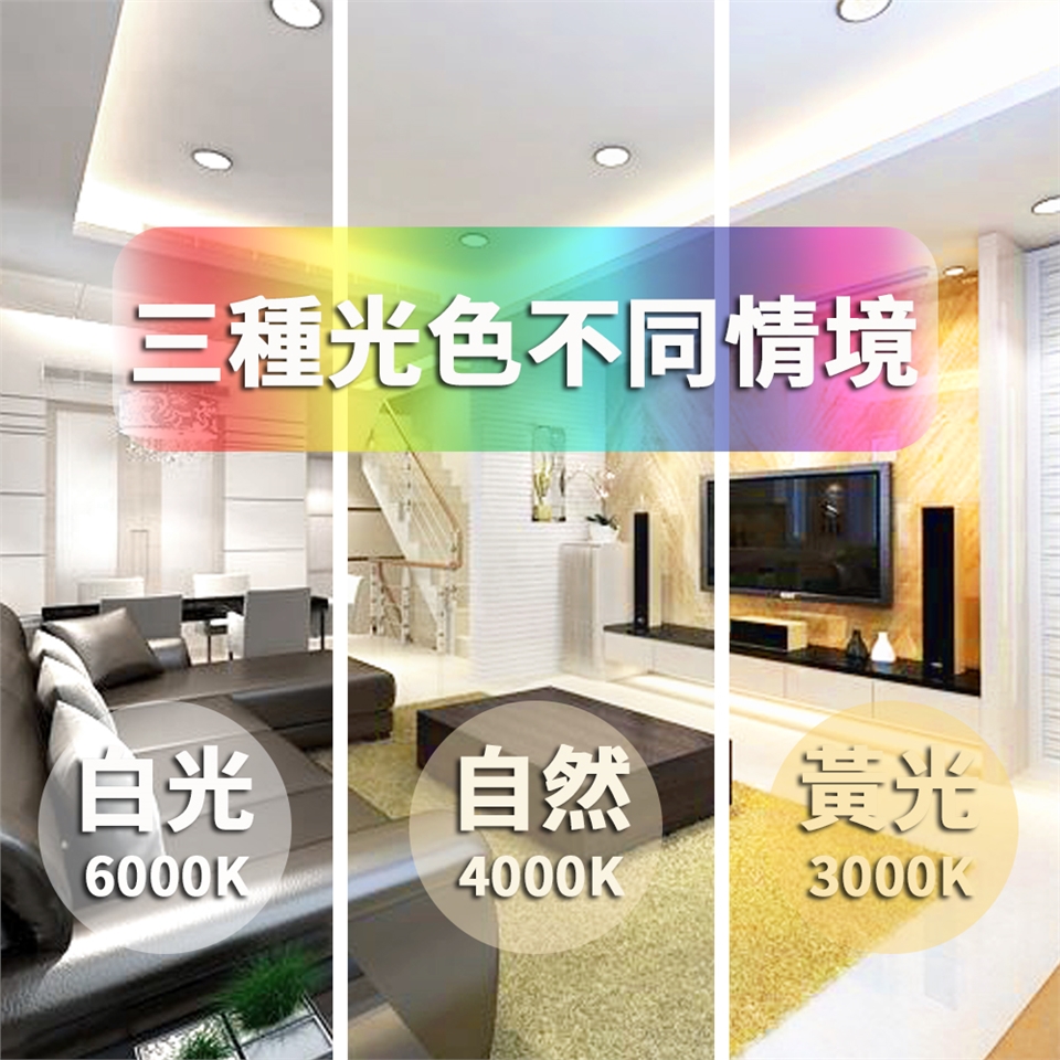 色溫 3000K(黄光),自然光(白K4000K),6000K(白光)