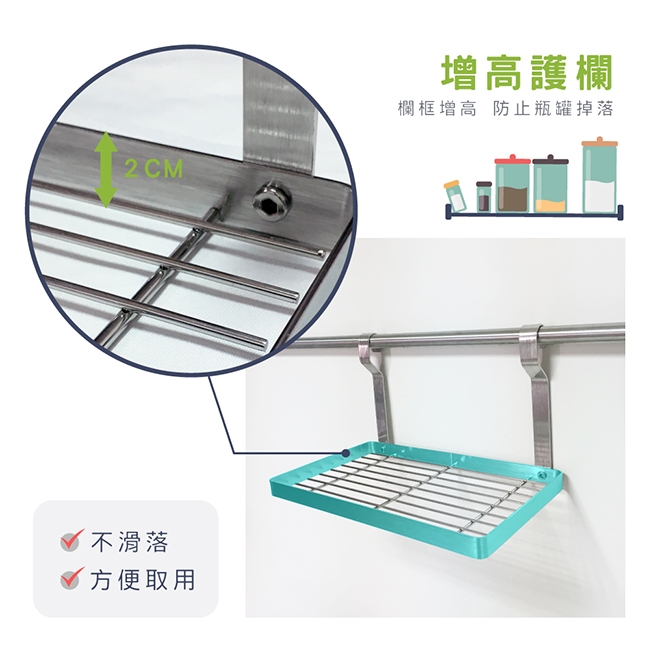 告別凌亂不堪的廚房,不鏽鋼掛桿式置物架,可放刀具、筷子、砧板、調味料等瓶瓶罐罐,讓你的廚房更加整齊又美觀!