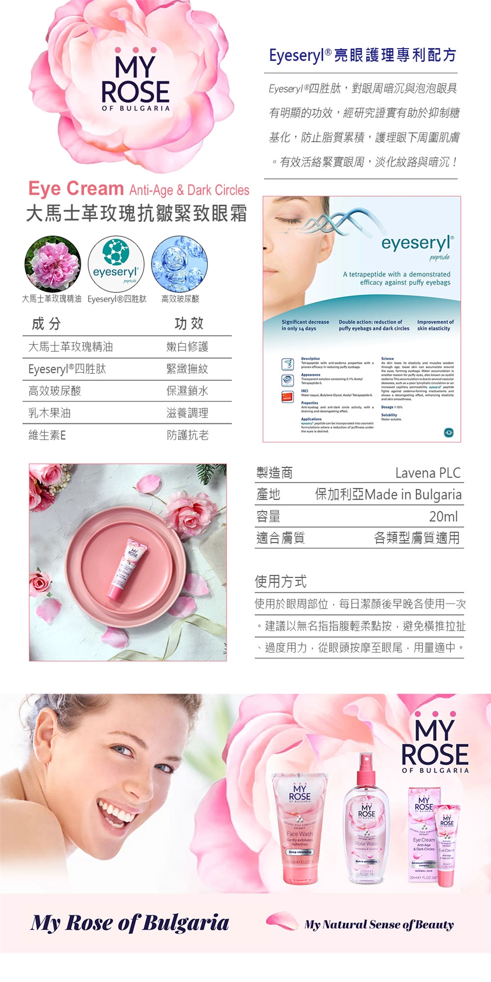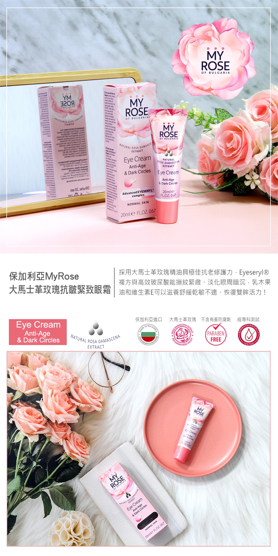 保加利亞MY ROSE大馬士革玫瑰抗皺緊致眼霜20ml