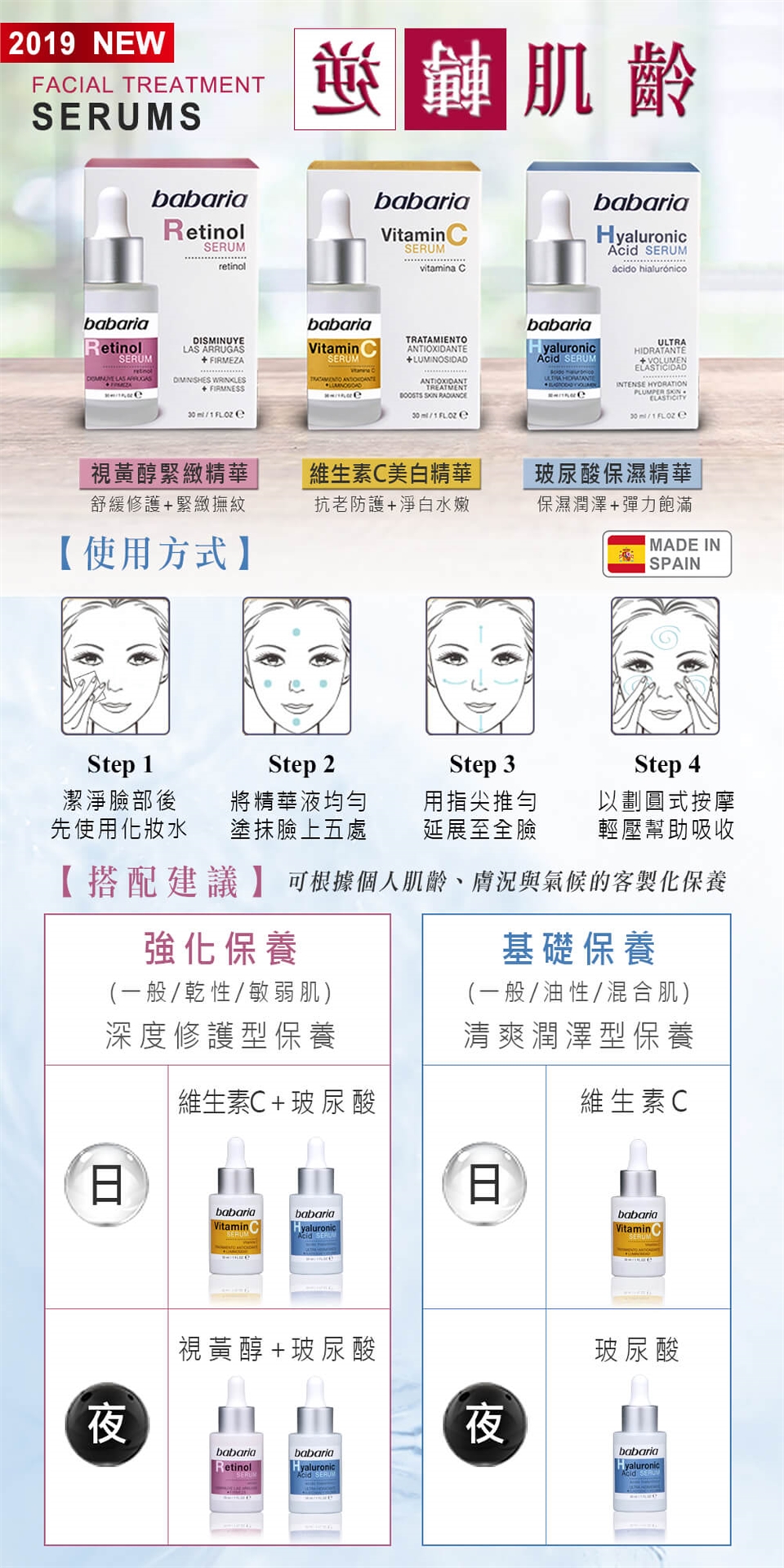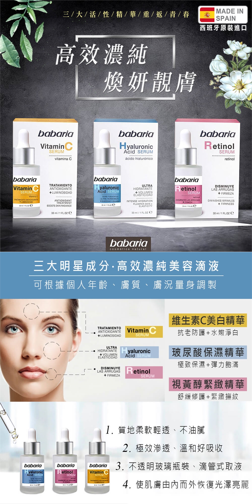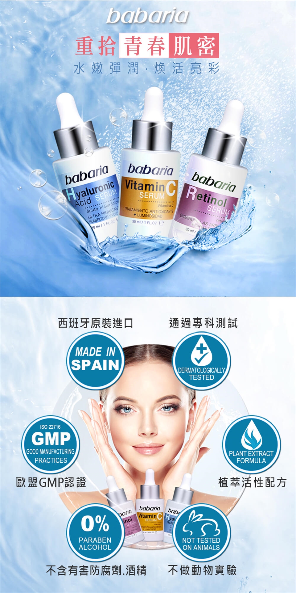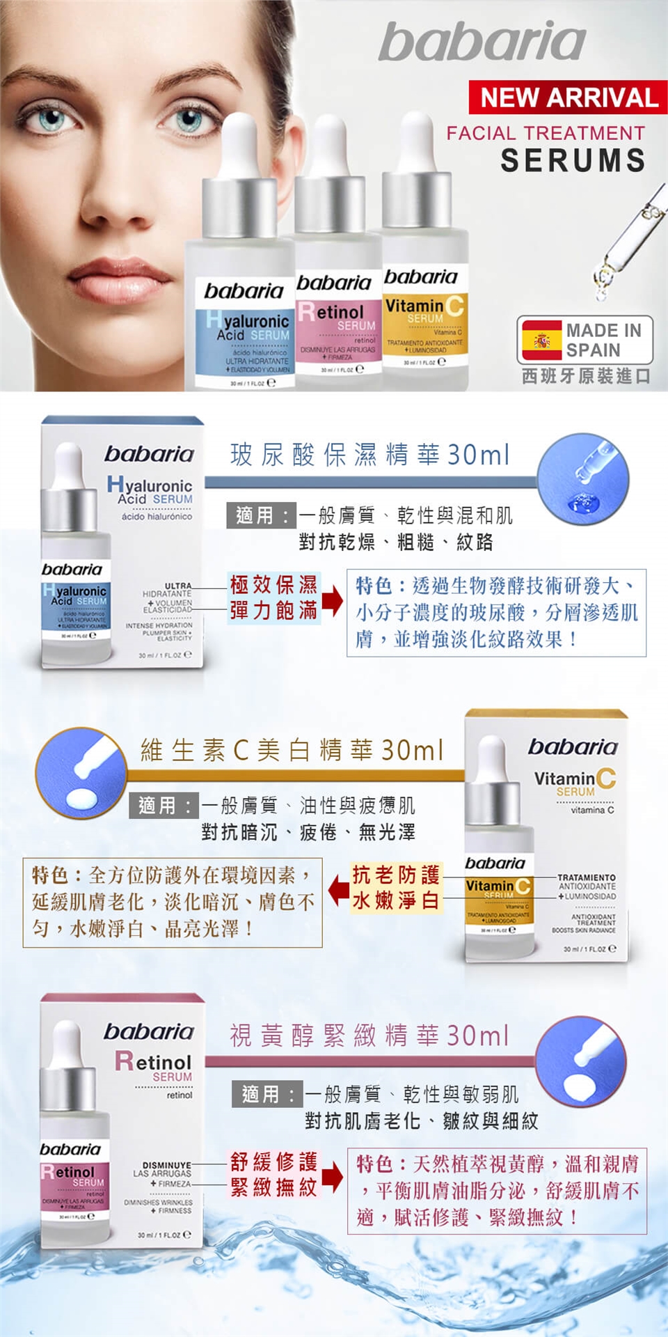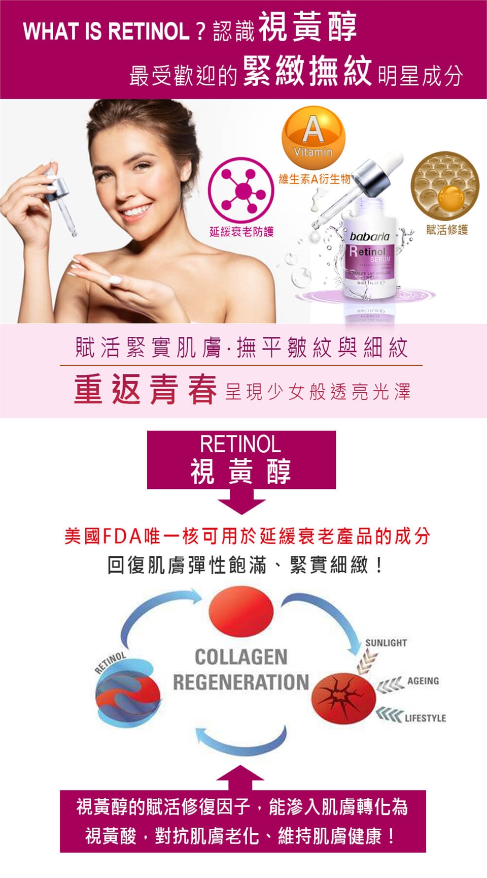 特色:天然植萃視黃醇,溫和親膚,平衡肌膚油脂分泌,舒緩肌膚不適,賦活修護、緊緻撫紋!