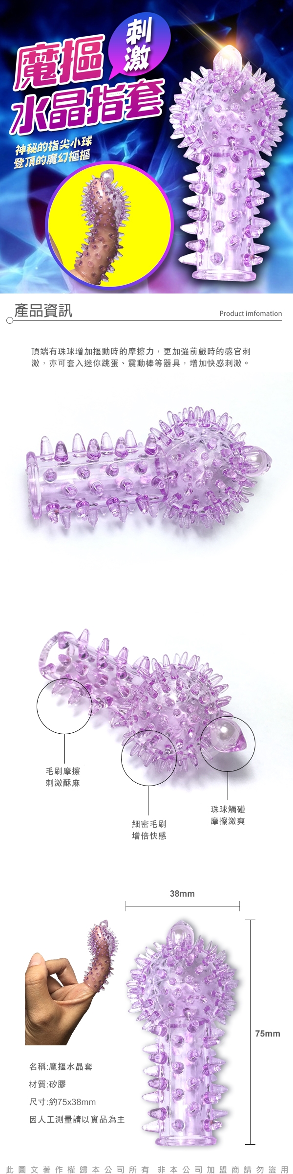 【注意事項】 【清洗注意事項】 【收納注意事項】 .主商品:魔指 水晶矽膠全方位指套 |