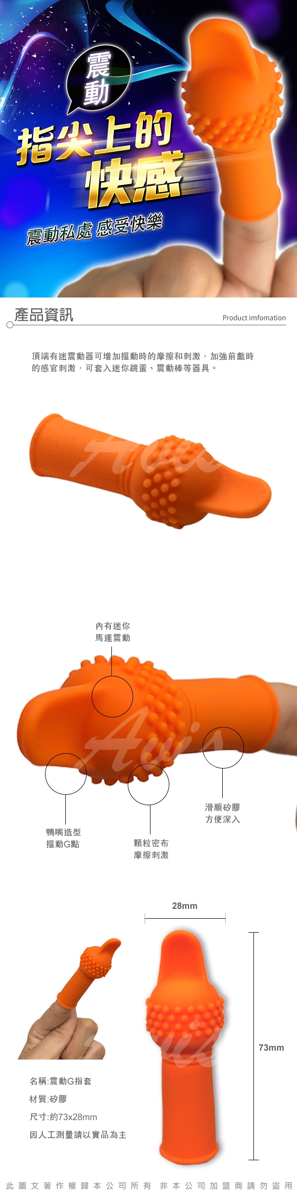 【注意事項】 【清洗注意事項】 【收納注意事項】 .商品名稱:神奇G指 手指震動器 |