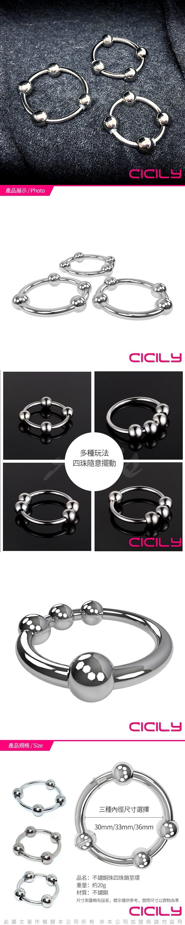 【注意事項】 【清洗注意事項】 【收納注意事項】 .商品名稱:虐戀精品CICILY 金屬不銹鋼 四珠鎖精環 陽具陰莖環 |