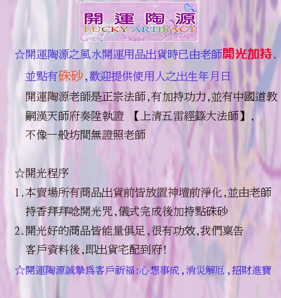 *效果: 招財,避邪,護佑家園