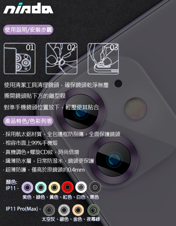 NISDA for iPhone 11 6.1吋 航太鋁鏡頭保護套環 9H鏡頭玻璃膜-黑色