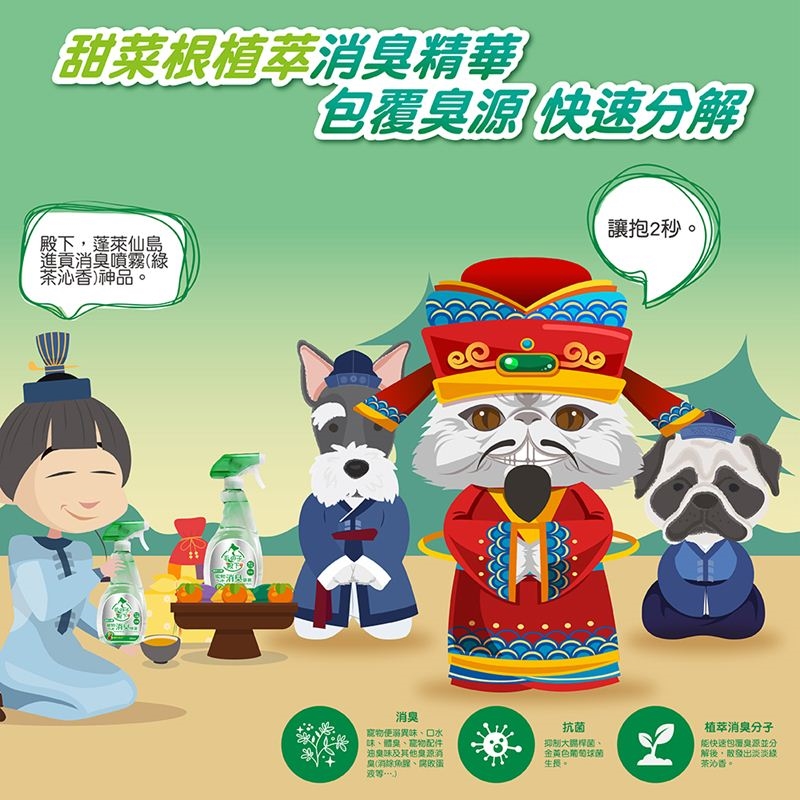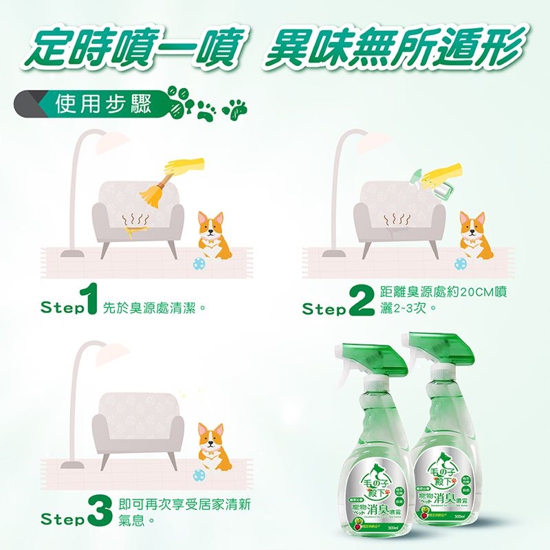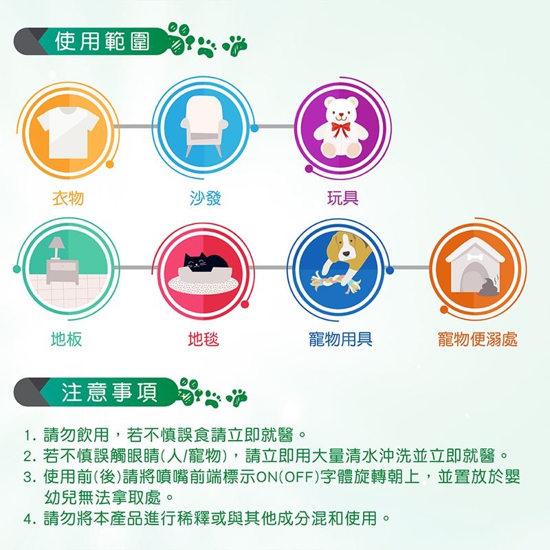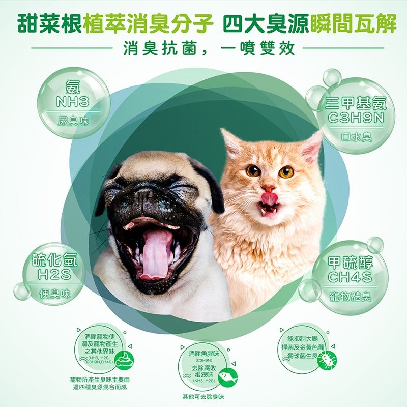 ✓植萃消臭配方,經日本實驗證實能快速去除家中寵物所引起之異味。