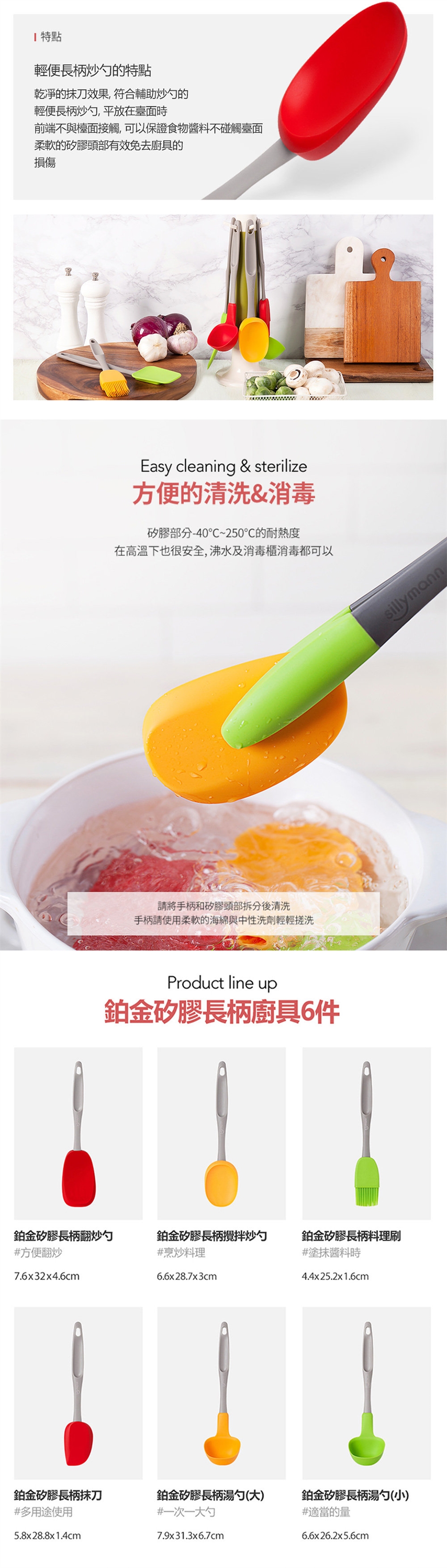 柔軟的鉑金矽膠材質讓廚具不蝸