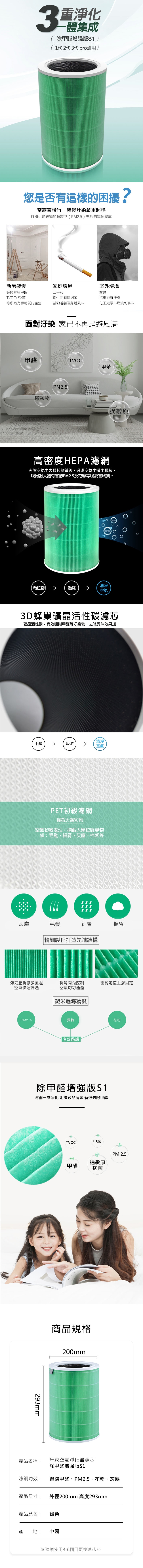 名稱:小米空氣淨化器濾芯 除甲醛增強版S1 (副廠)