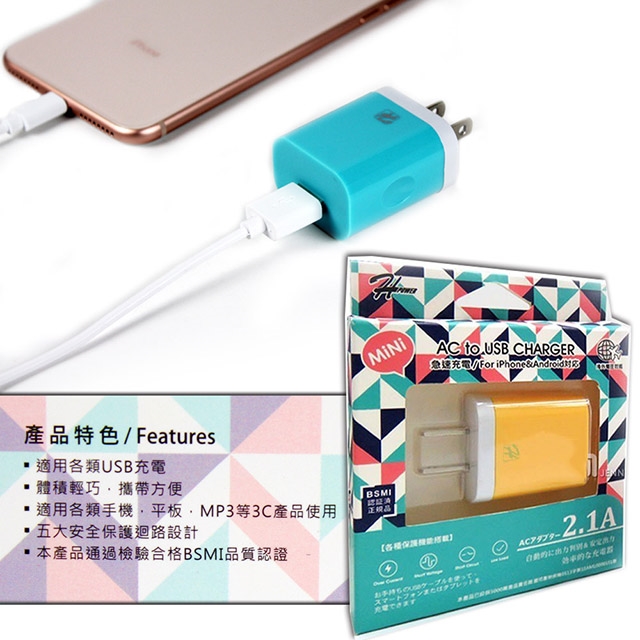 炫彩2.1A USB快速充電器(加贈Micro USB快充線)