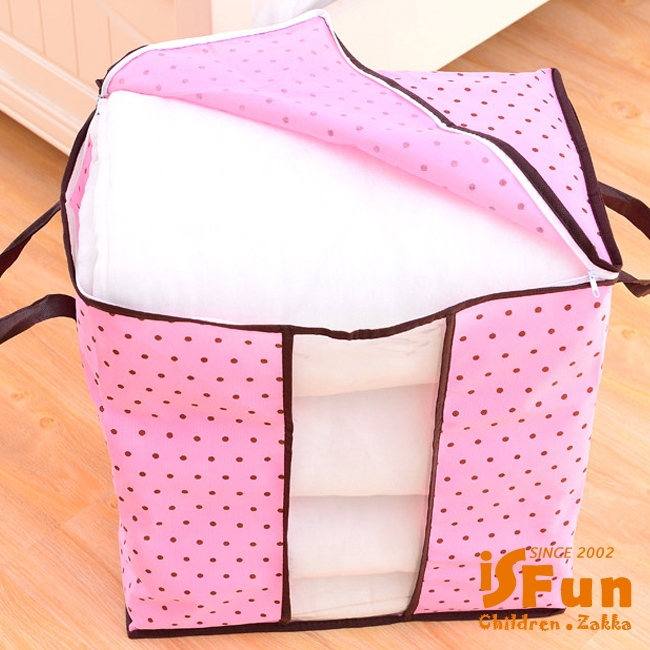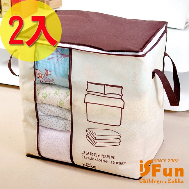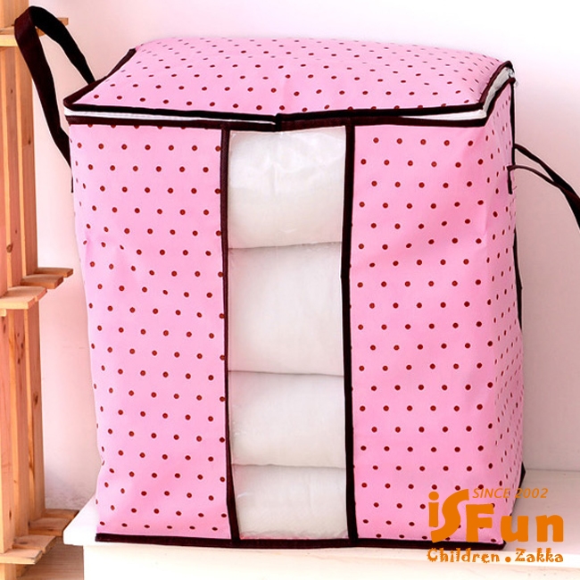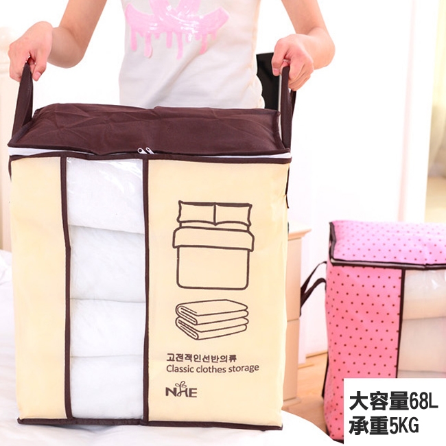 大容量的輕巧無紡布料,防潮防塵,可裝入大型的棉被等衣物,不用的時候摺就能疊節省空間,