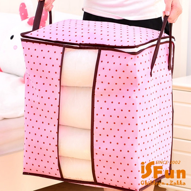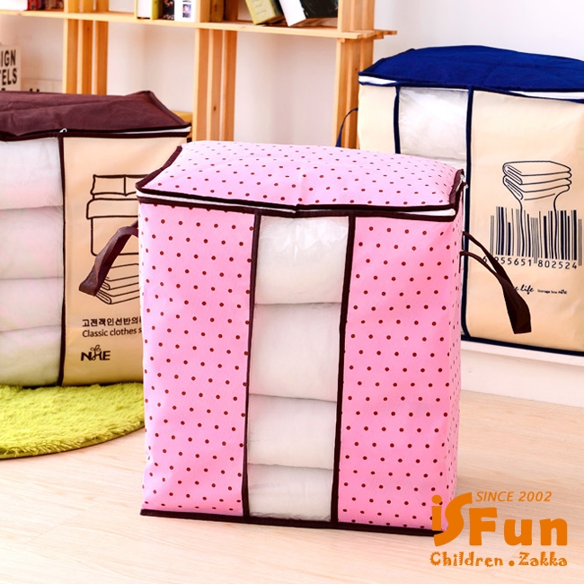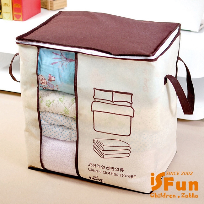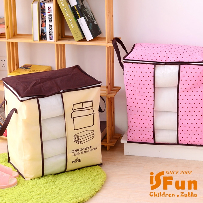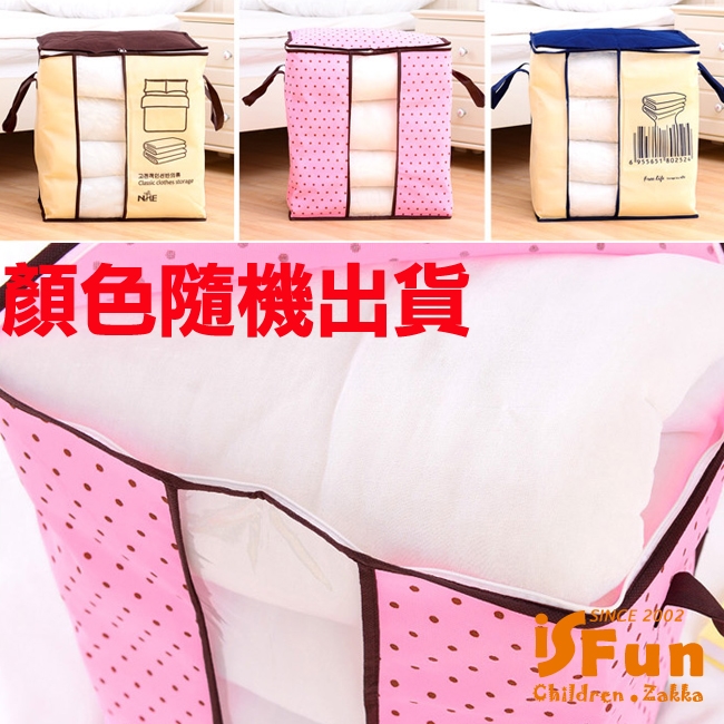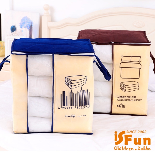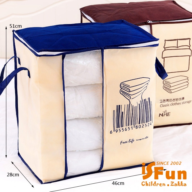 大容量的輕巧無紡布料,防潮防塵,可裝入大型的棉被等衣物,不用的時候摺就能疊節省空間,