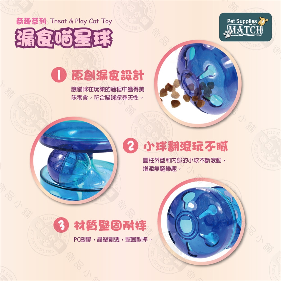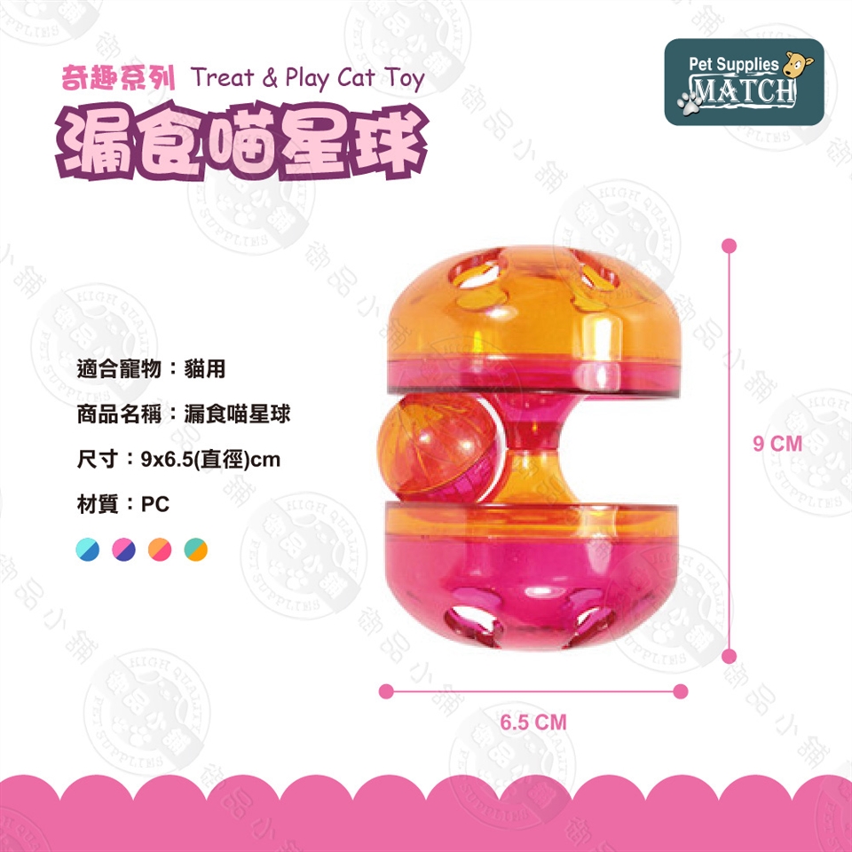 MATCH 【漏食喵星球】 顏色隨機出貨 貓玩具 漏食球 玩具球 堅固耐用 可放飼料 寵物玩具 軌道球
