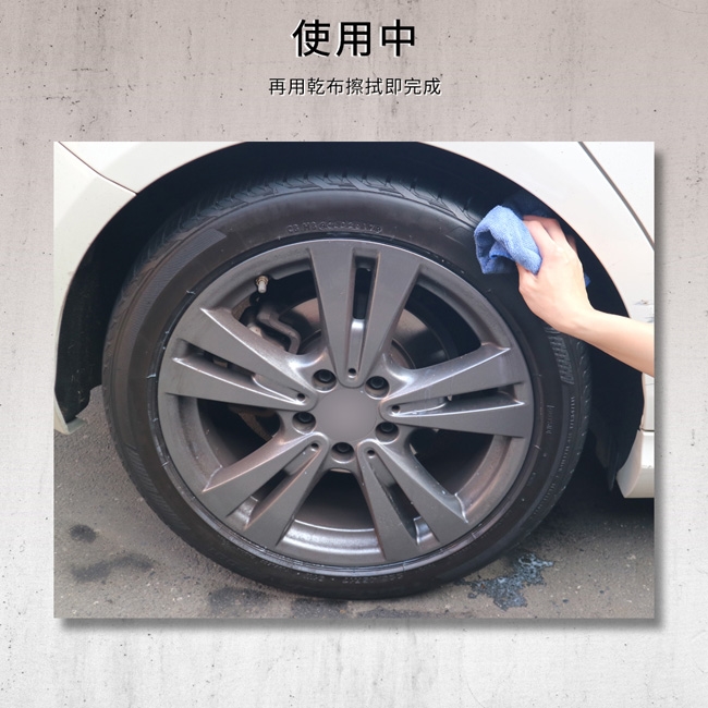 使用前請先搖勻,直接噴灑於輪胎表面,再用乾布擦拭即可。