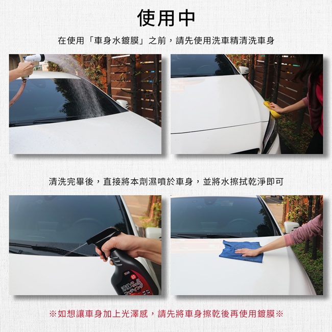 ※ 注意:一定要把車洗乾淨後再噴水鍍膜喔!