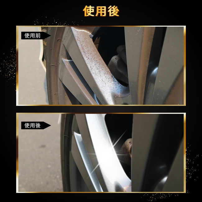 採用日本配方,可有效去除輪圈鐵粉、柏油、煞車粉塵、塵垢等頑強髒污,達到潔淨明亮保持輪胎鋁圈煥然一新。