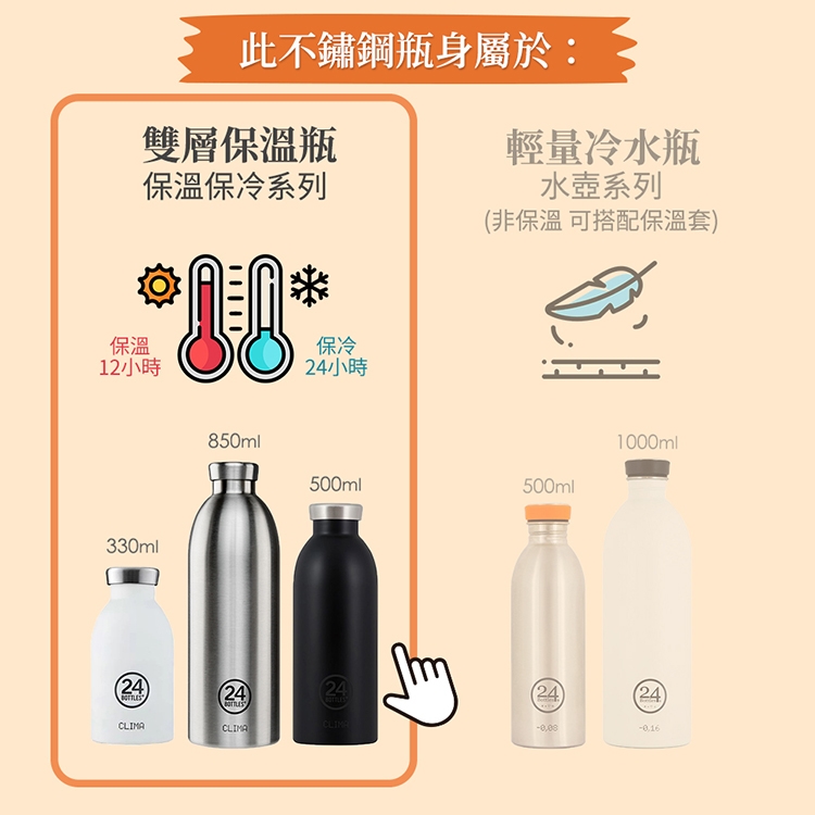 ‧瓶身雙層設計,不易凝結水珠於瓶身