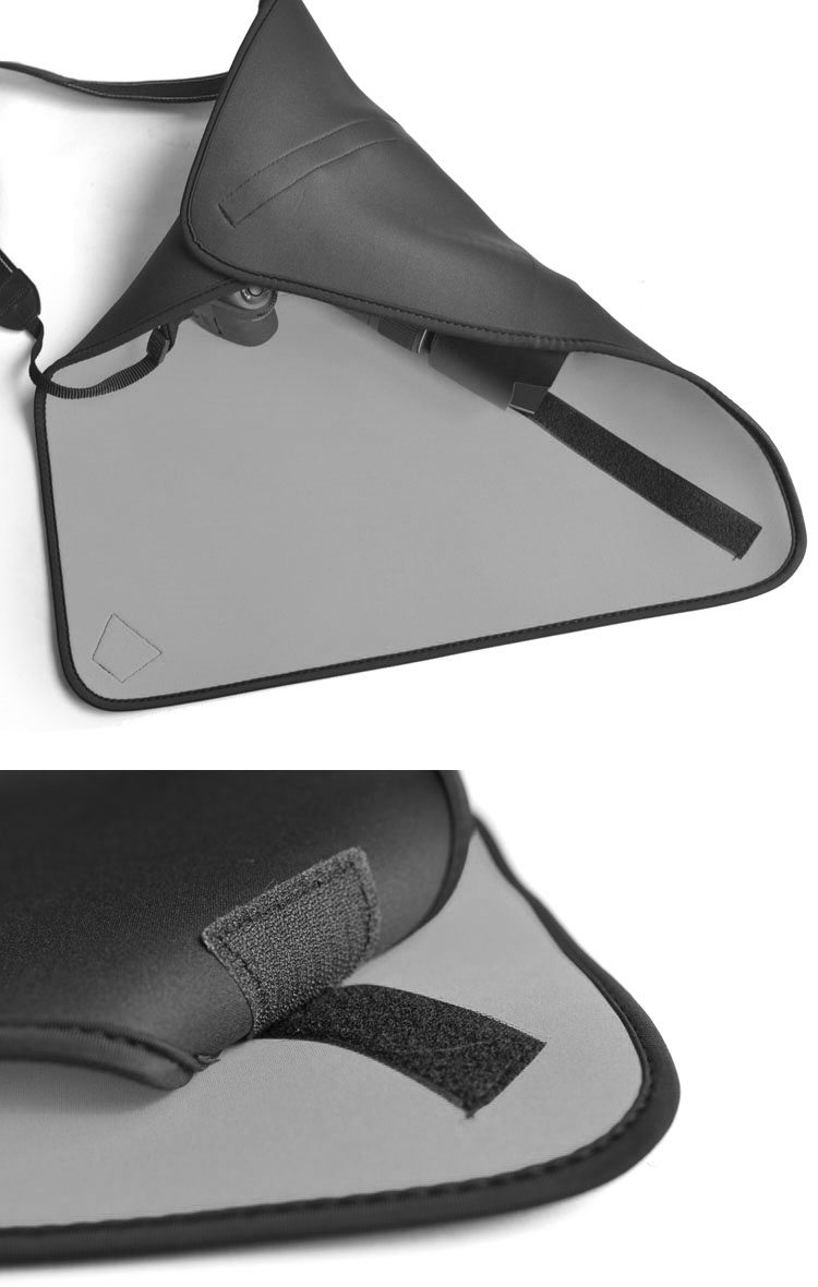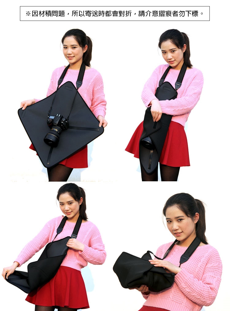 ●鏡頭較長的相機可以參照以下方式,把布貼成三角狀,再把前端塞進去即可