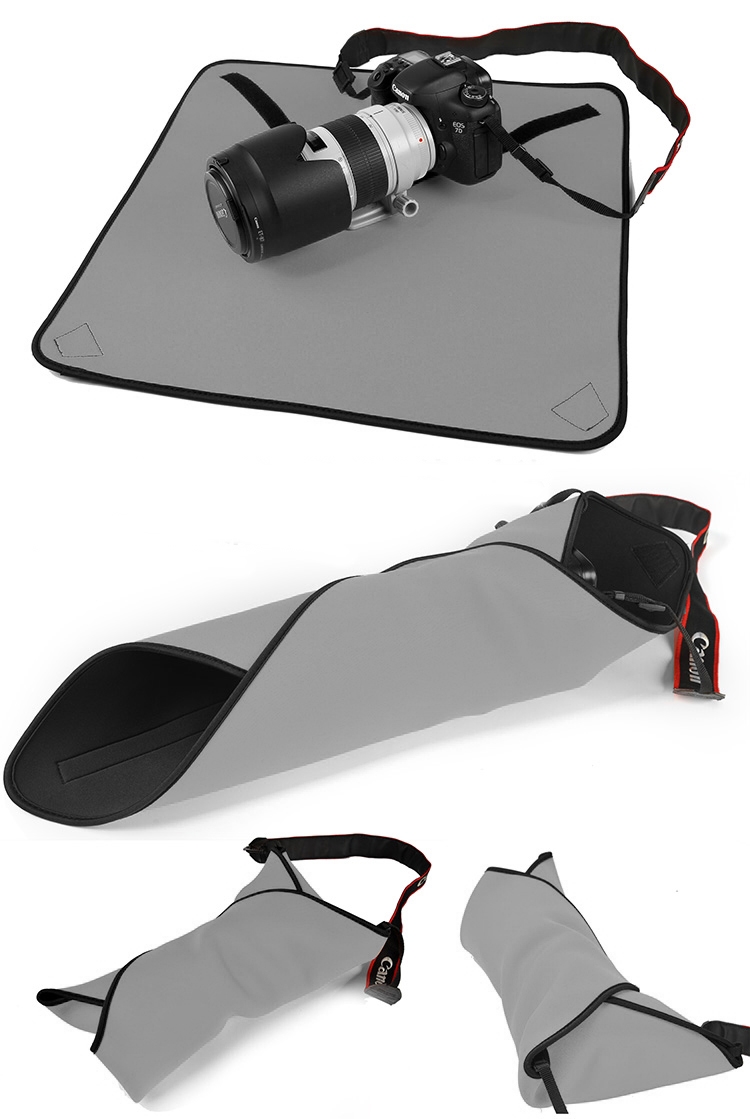 ●【品名】兩用相機包裹布 相機保護布百折布 相機布內膽布50x50cm(黑/灰;彈性潛水布;防撞防水布)適保護鏡頭.輕單眼微單反防護