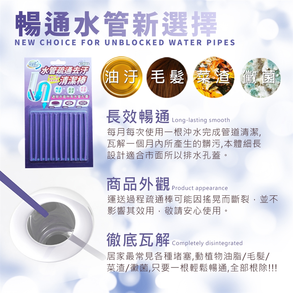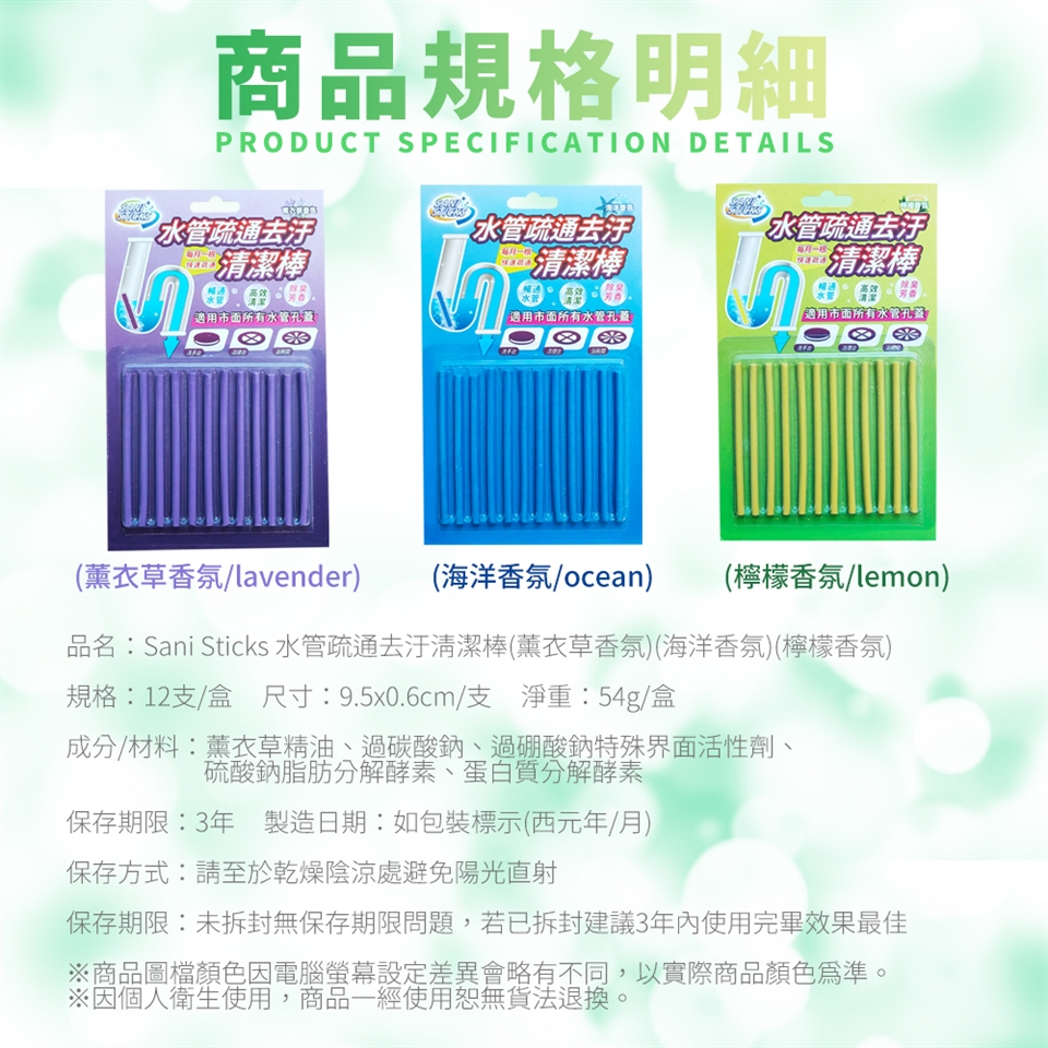 6.本產品不建議使用於馬桶內,因為馬桶水管較一般水管寬,會容易就將清潔棒直接排到糞坑,降低清潔效果。 ※商品圖檔顏色因電腦螢幕設定差異會略有不同,以實際商品顏色為準。