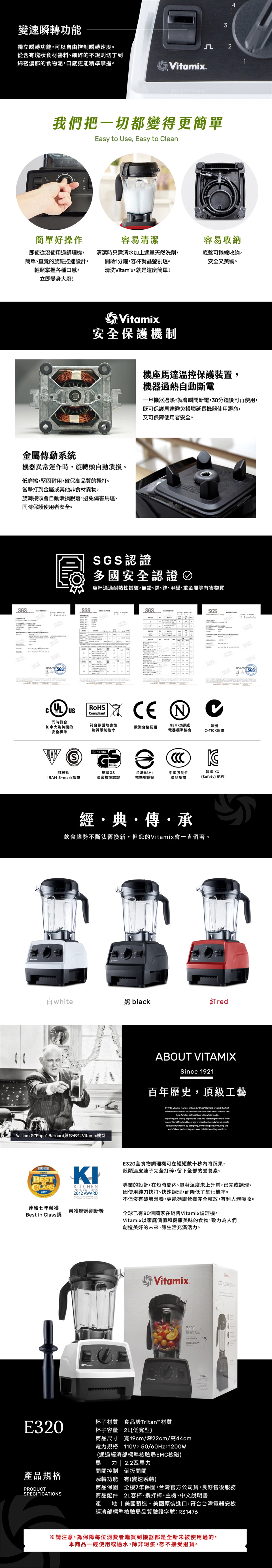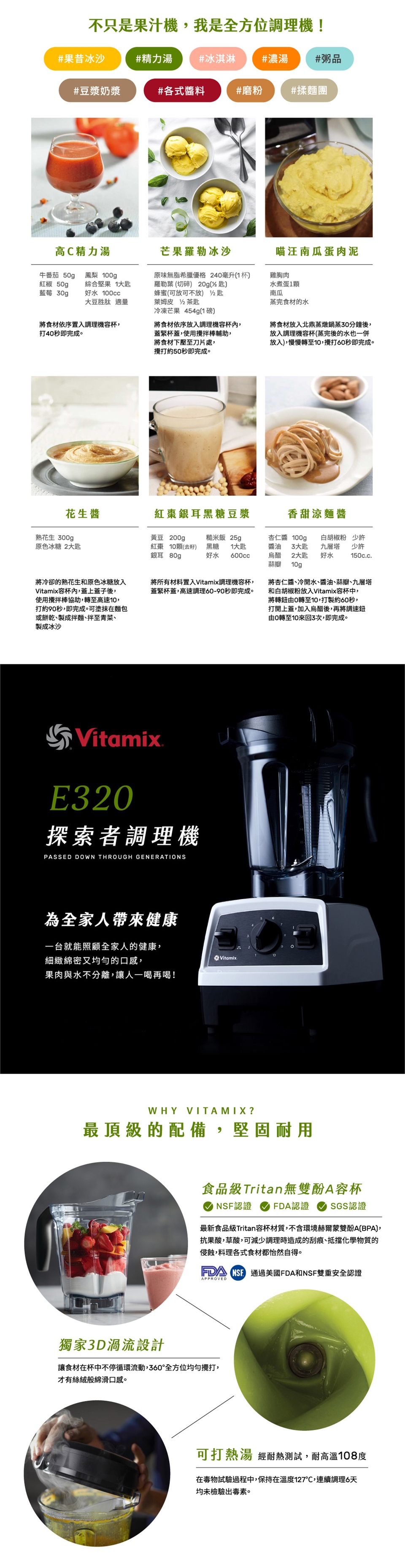 美國百年品牌Vitamix E320 Explorian探索者系列─經典傳承款調理機!