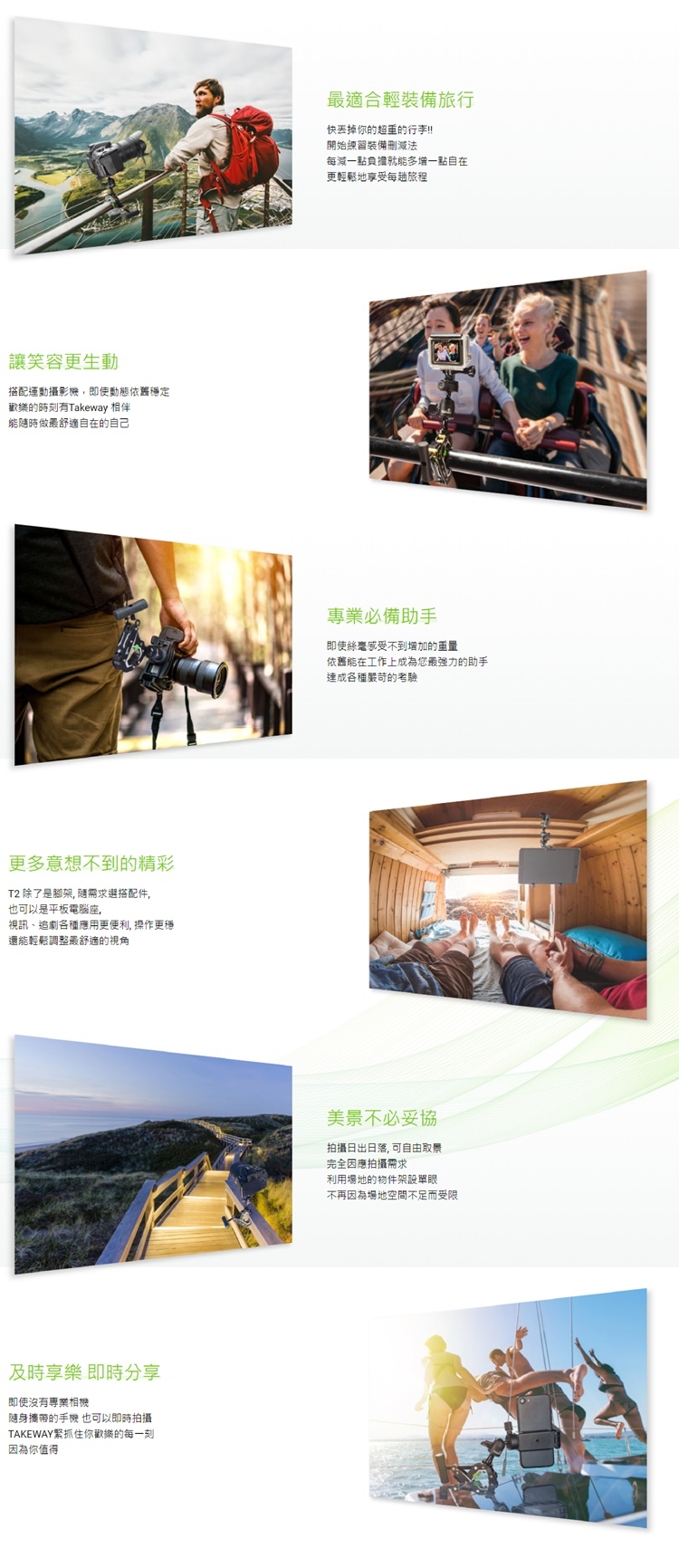 ●隨著搭配的配件,T2不只是腳架,更可以是平板電腦座,各種應用更便利
