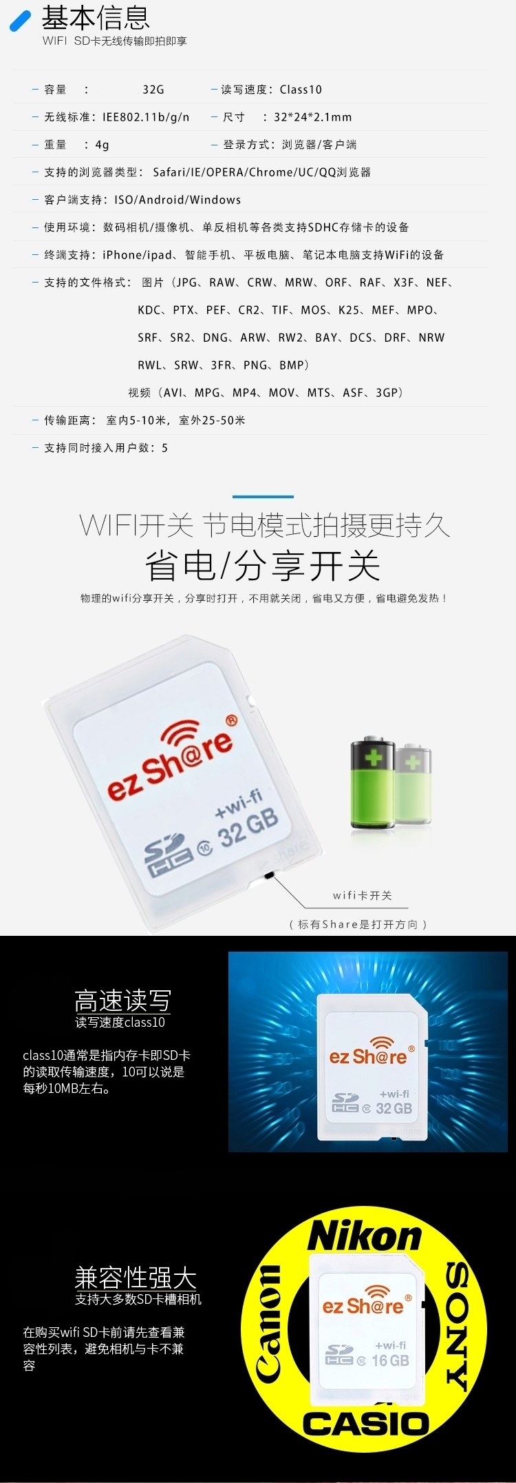 ●【品名】ezShare wi-fi無線SDHC記憶卡32G SD卡ES32G(Class10,分享派照片google+facebook)適Canon Nikon Sony Pentax Fujifilm Olympus Panasonic (開年公司貨)
