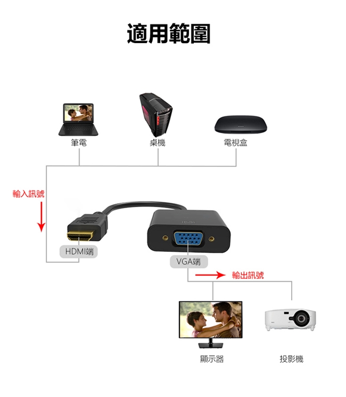 ◆適用將HDMI訊號轉為VGA訊號之影像顯示