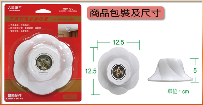 1.本產品適用AC110V~220V/60W以下燈泡。