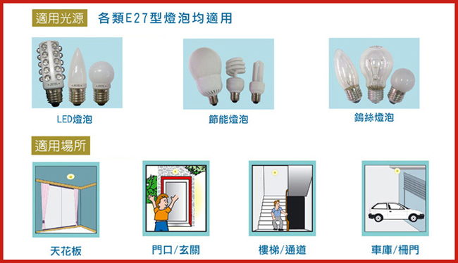 4.適用場所:天花板、樓梯、通道、門口、玄關、窗戶、車道、陽台。