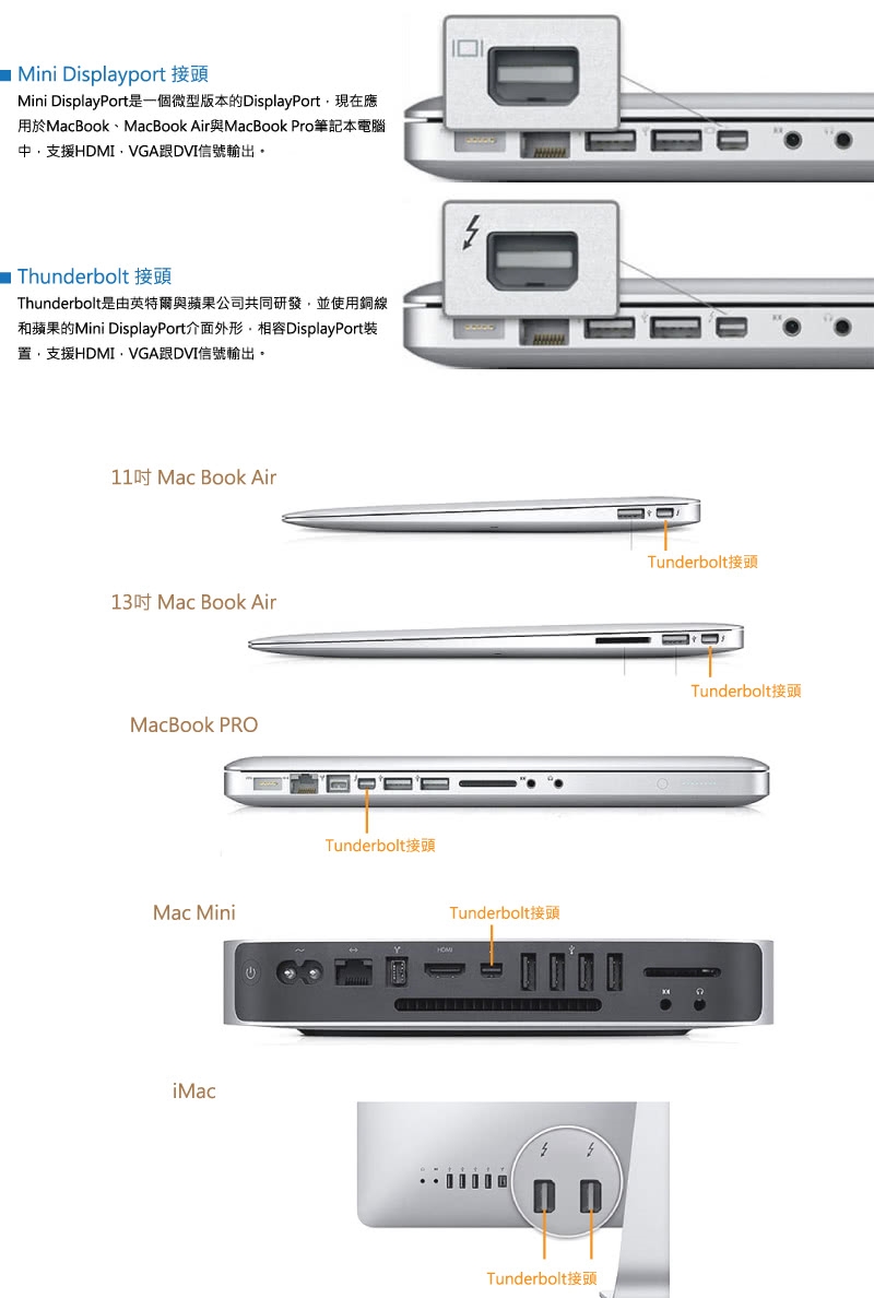 ◆ 支援 所有 mini DisplayPort & Thunderbolt 連接埠