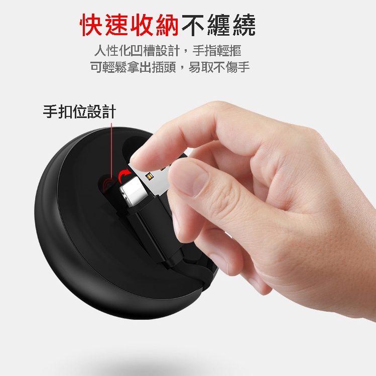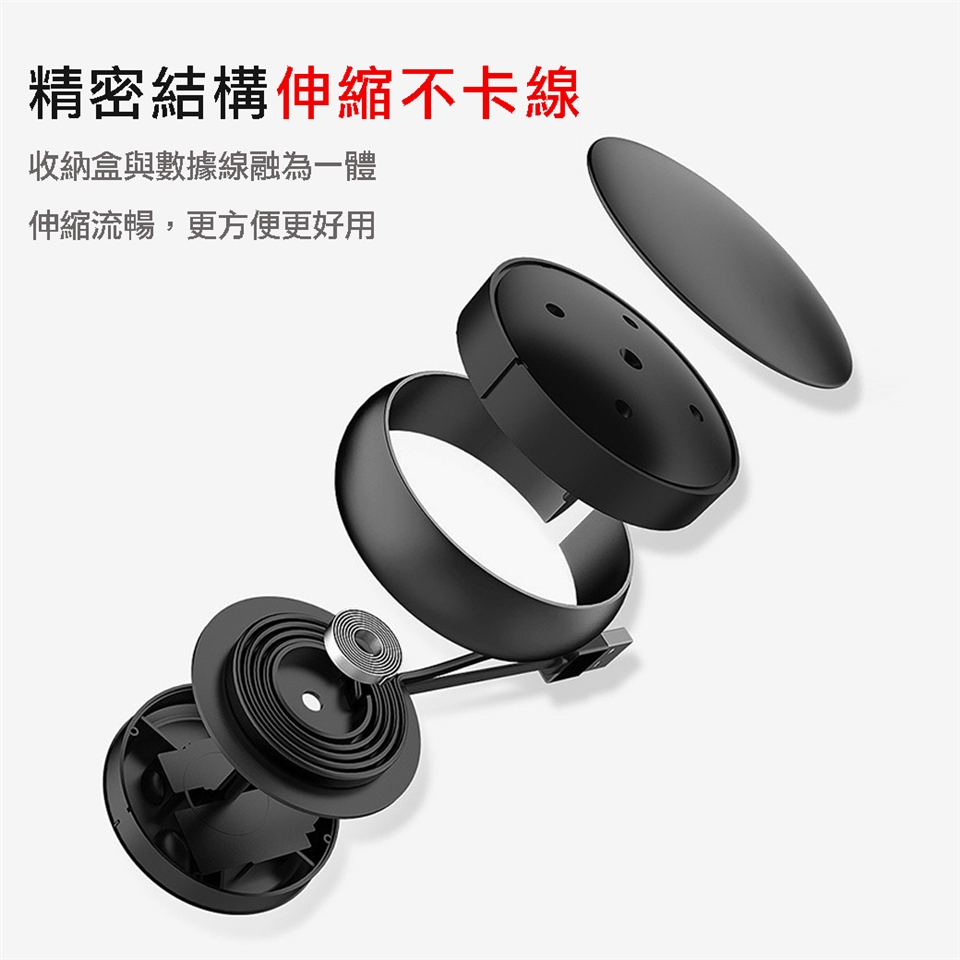 收納盒與充電線融為一體,伸縮流暢不卡線