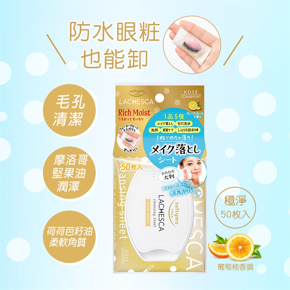 全新加厚大尺寸,只要一張即可輕鬆卸除頑固彩妝、清潔毛孔、洗顏潤澤 !