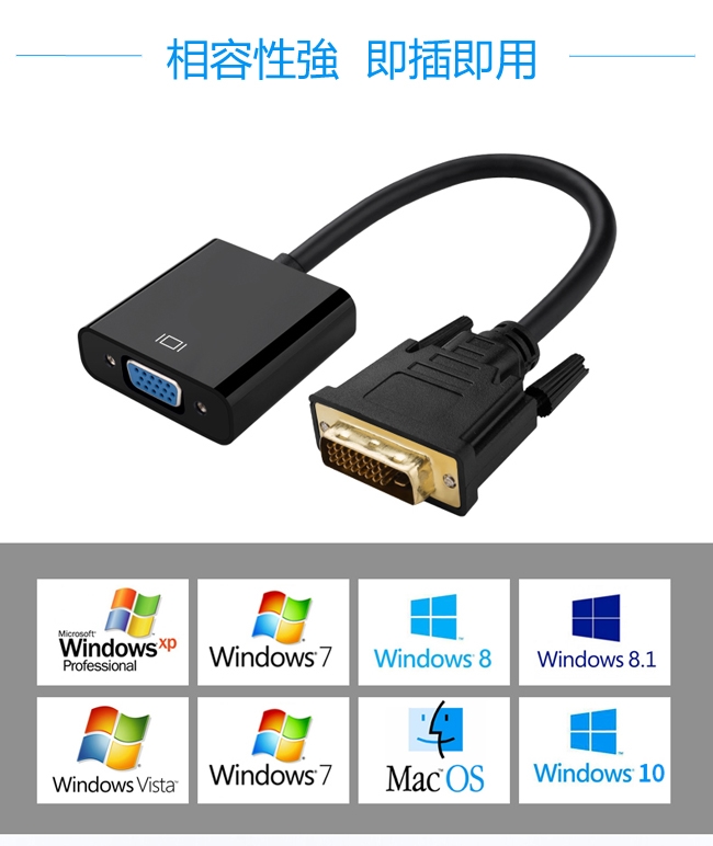 ◆ 線長15公分,強化鍍金DVI (公)接頭,標準VGA(母)接孔