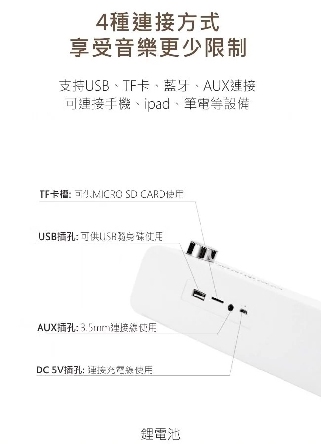 09.具USB隨身碟插槽、TF卡插槽,插入直接撥放音樂。(支援最高容量32G)