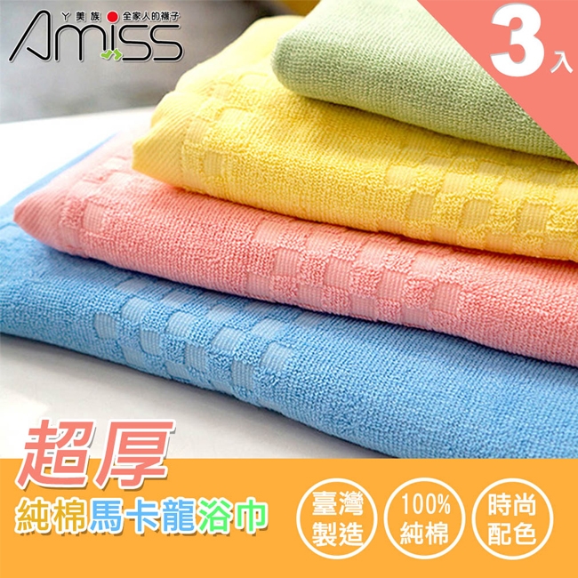 【Amiss】超厚純棉馬卡龍浴巾3入組(1203)
