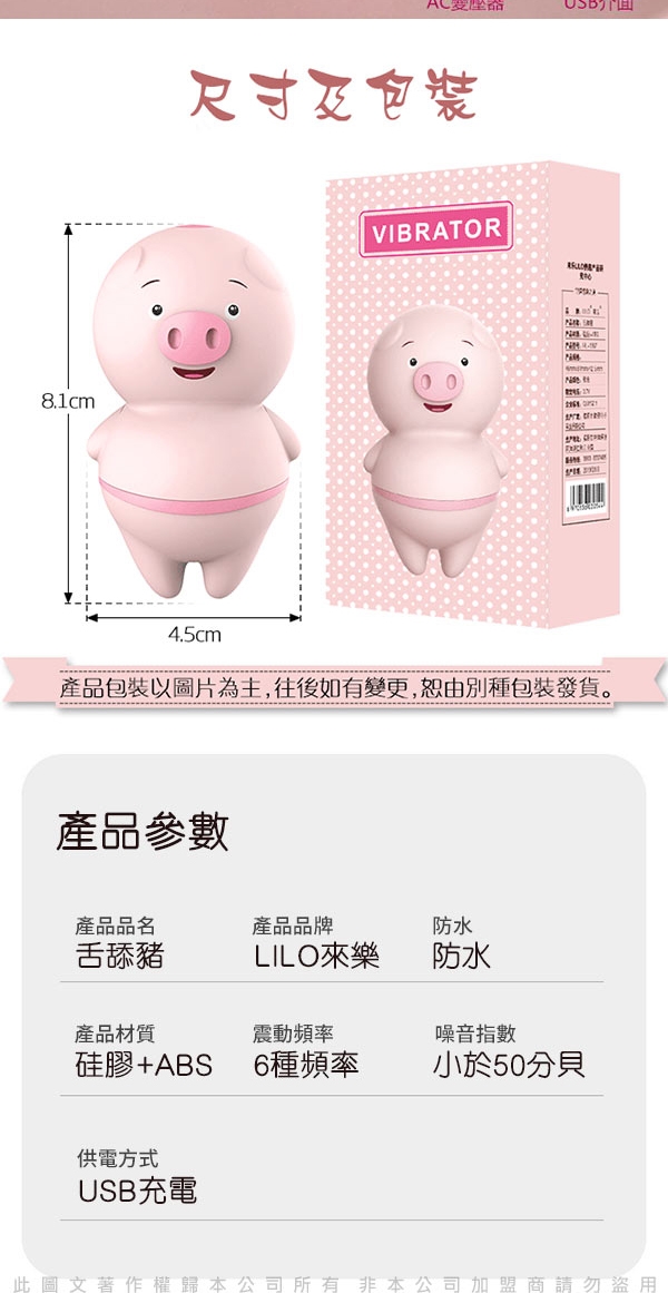 品名:LILO-萌寵豬 6頻 舌舔按摩器