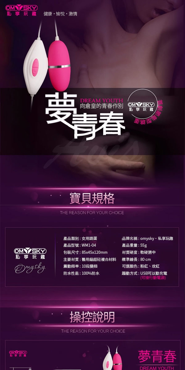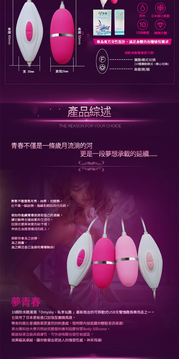 .商品內容:Omysky-夢青春 10段變頻 USB直插 震動跳蛋 |