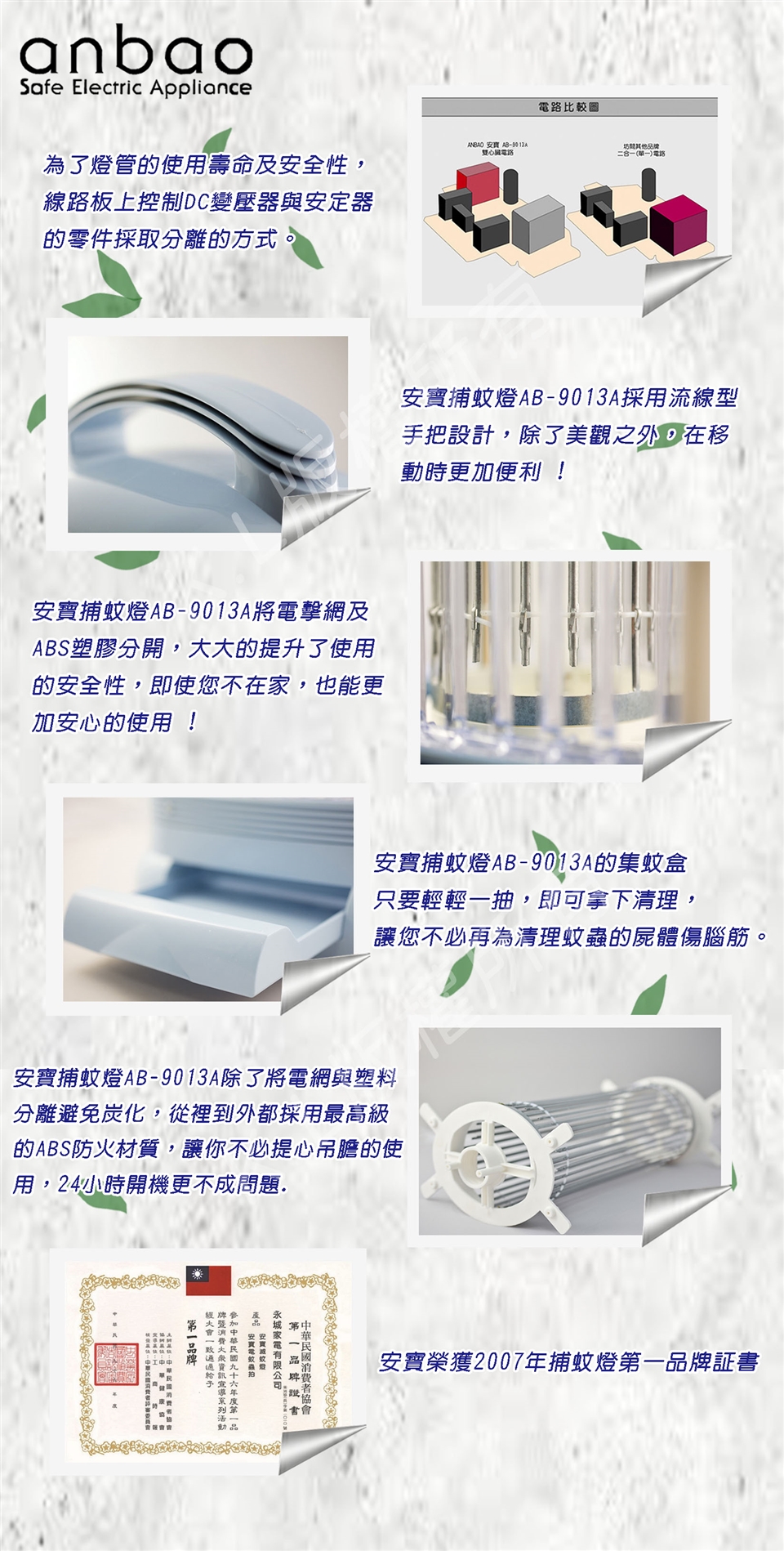 (2) 利用捕蟲燈管來引誘蚊子、蒼蠅、飛蛾、果蠅、白蟻等昆蟲進入,滅蚊器內,然後由對人沒危險的直流電觸殺。