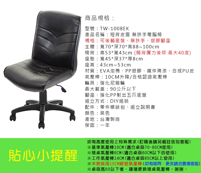 ※本皮椅採用人工PU合成皮,台灣工廠製造,非大陸奈米皮,