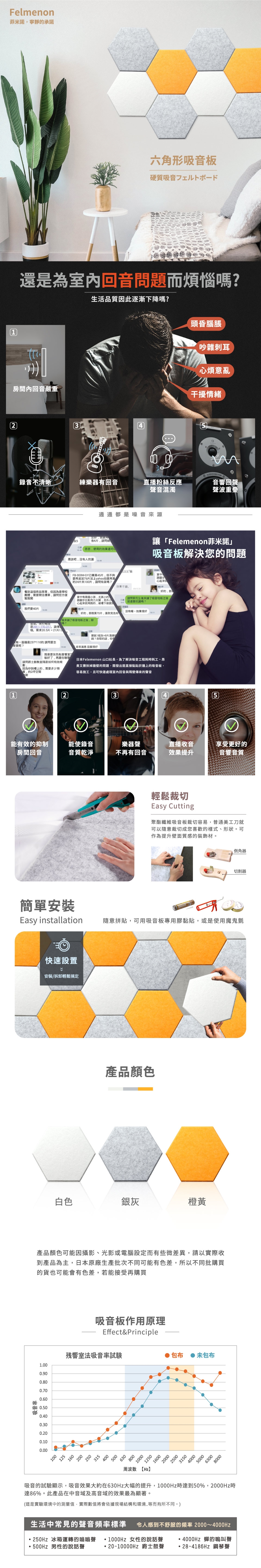 Felmenon包布的為11mm,針對需加強吸音效果的狀況下建議使用貼2片。