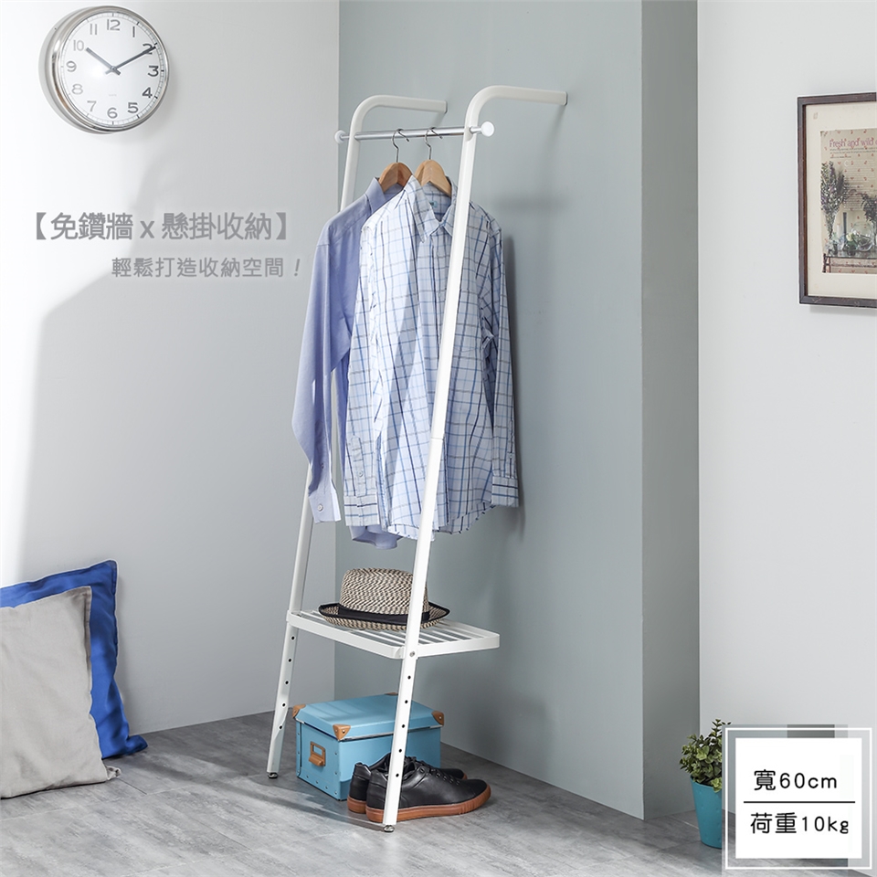 ★ "力學角度"原理,僅倚靠牆就能平衡穩固;且當吊掛物品越重,衣架就越穩定牢固。