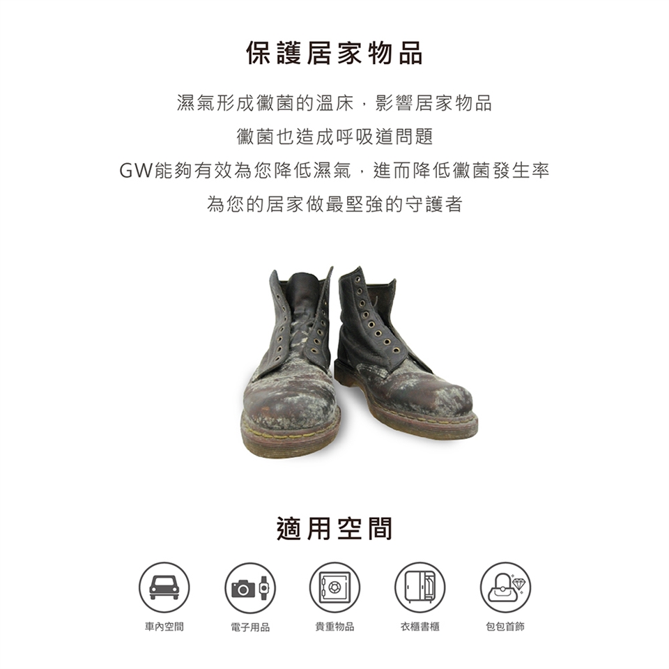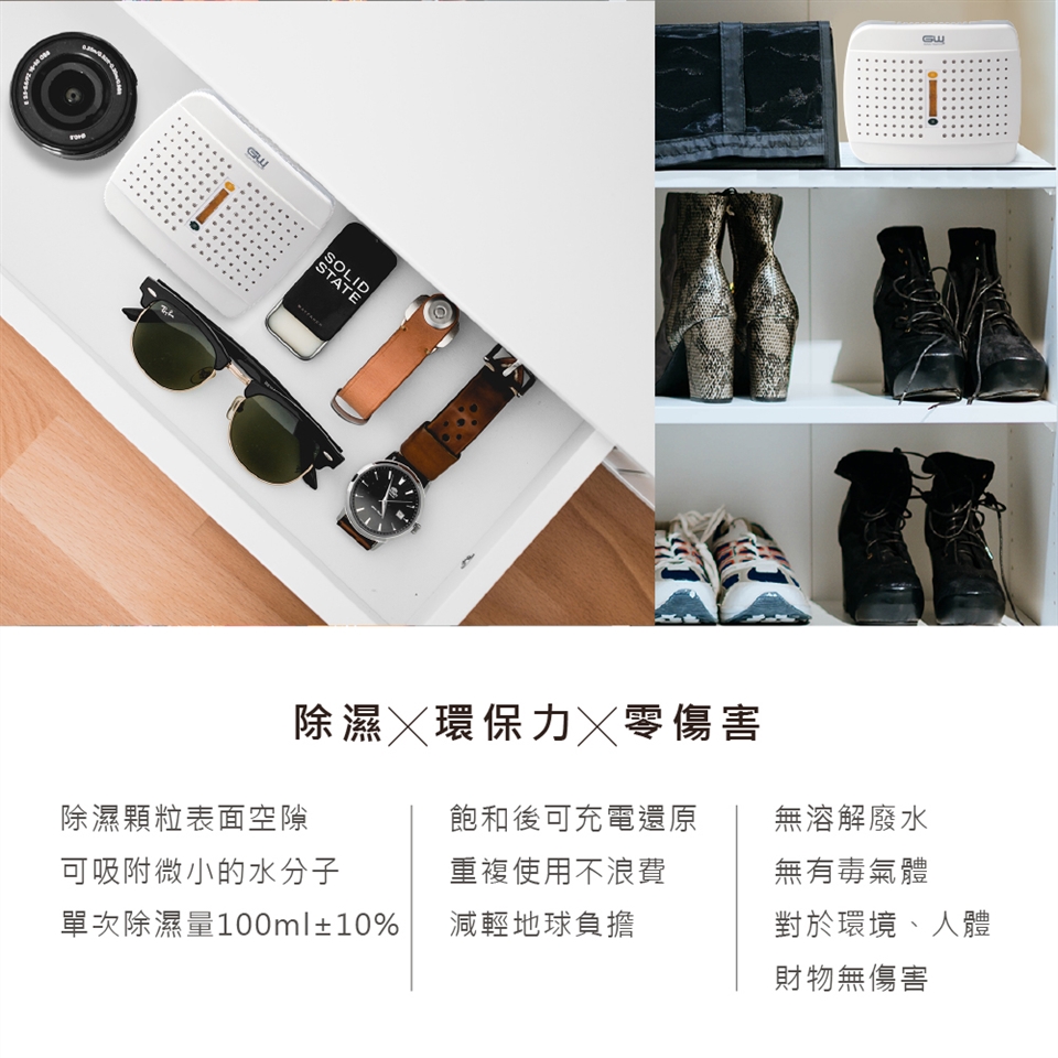 除濕顆粒表面空隙可吸附微小的水分子,單次最大除濕量 120ml
