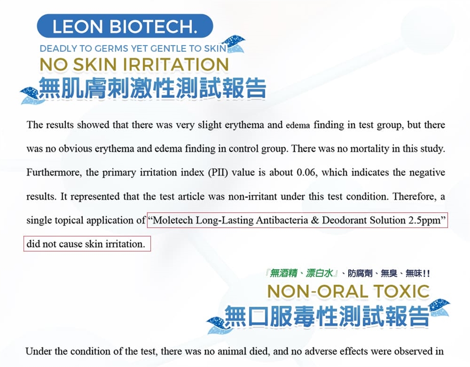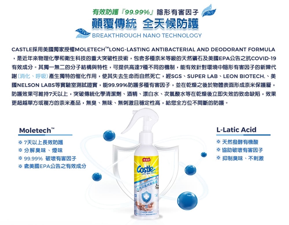 成 分:去離子水、L-Lactic acid、MOLETECH™長效型消臭防護配方