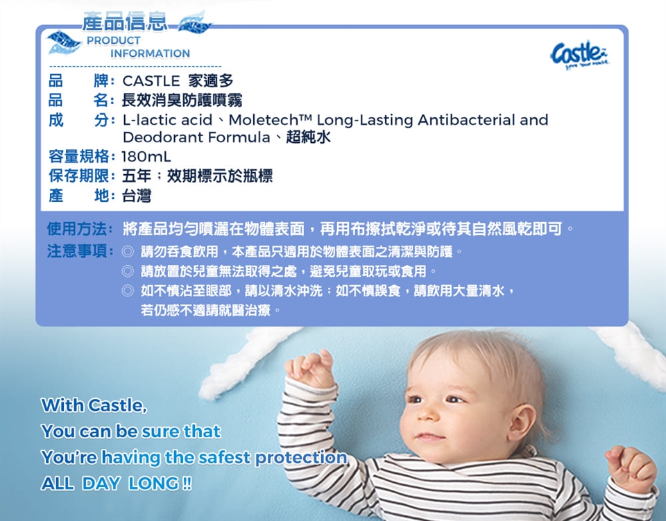 #Castle家適多 #多功能清潔噴霧 #長效防護 #MOLETECH科技 #物理性防護 #分解異味 #免洗速乾 #無酒精 #低敏溫和 #隨行瓶 #外出防護 #旅行清潔 #車內防護 #桌面清潔 #嬰幼兒友善 #寵物友善 #居家防護 #台灣製造 #長效淨味