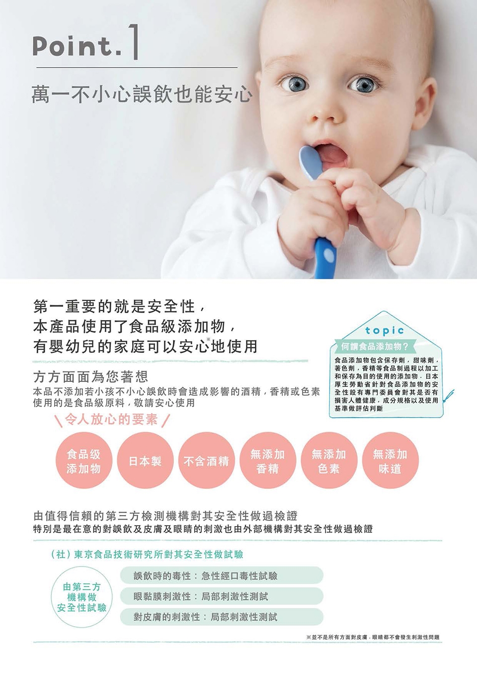 2、成分雖為食品添加物組成,若誤食引起噁心不舒服等症狀請立即就醫。