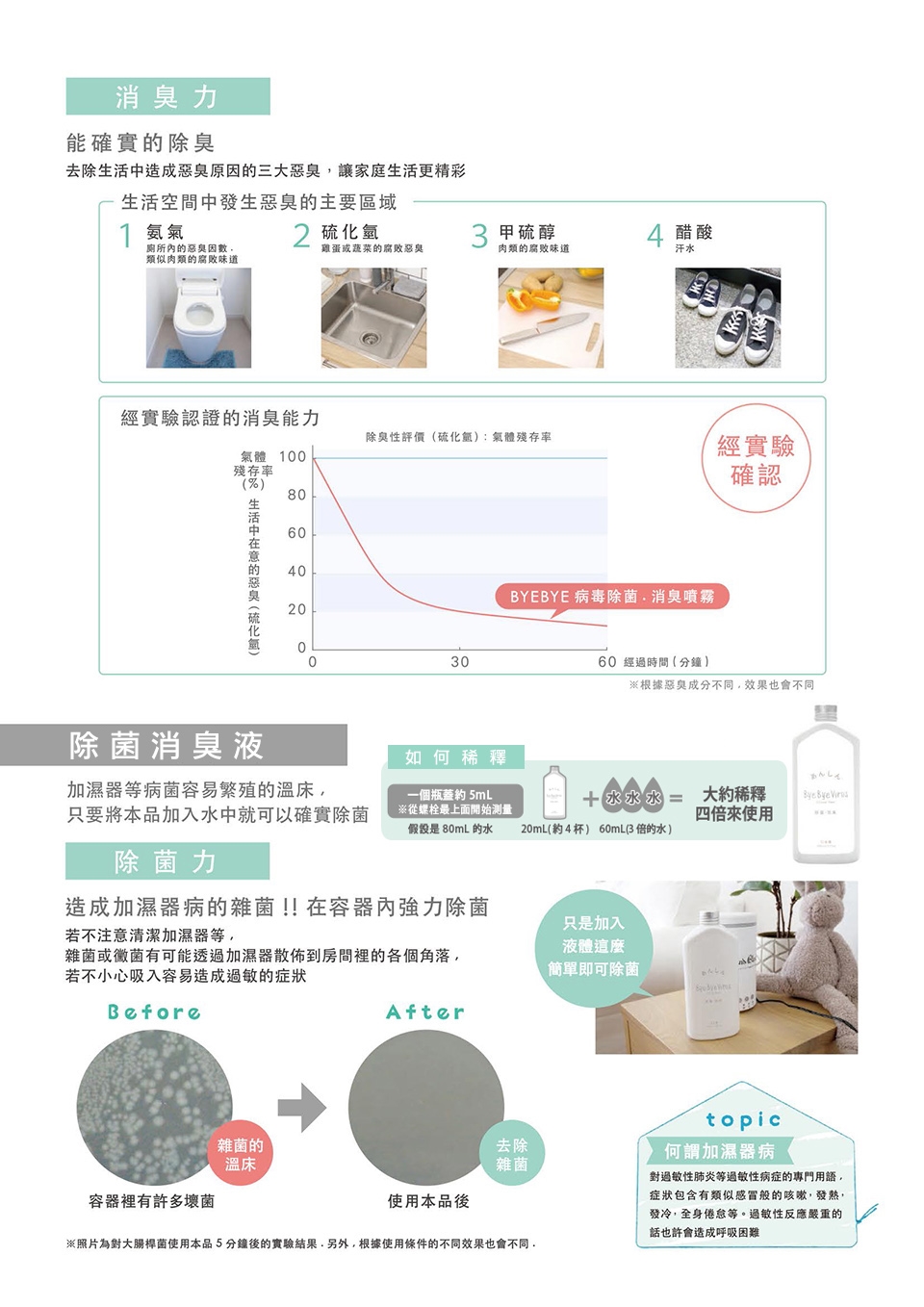 方式1:以1(原液):3(蒸餾水)方式稀釋,添加於加濕器、霧化器中。