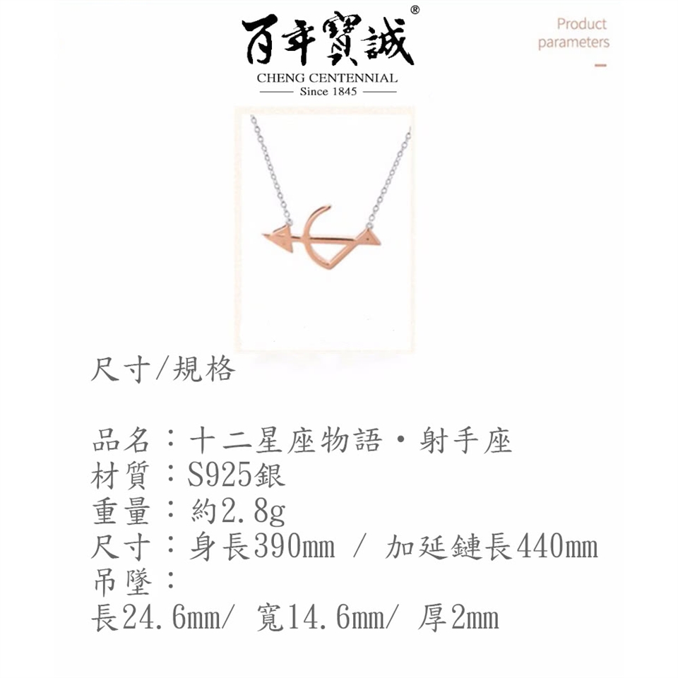 商品: 百年寶誠星座物語項鍊-射手座X1