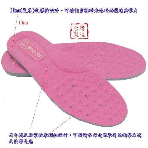 ■10mm(最厚)乳膠棉設計,可緩衝穿鞋時走路時的壓迫衝擊力。
